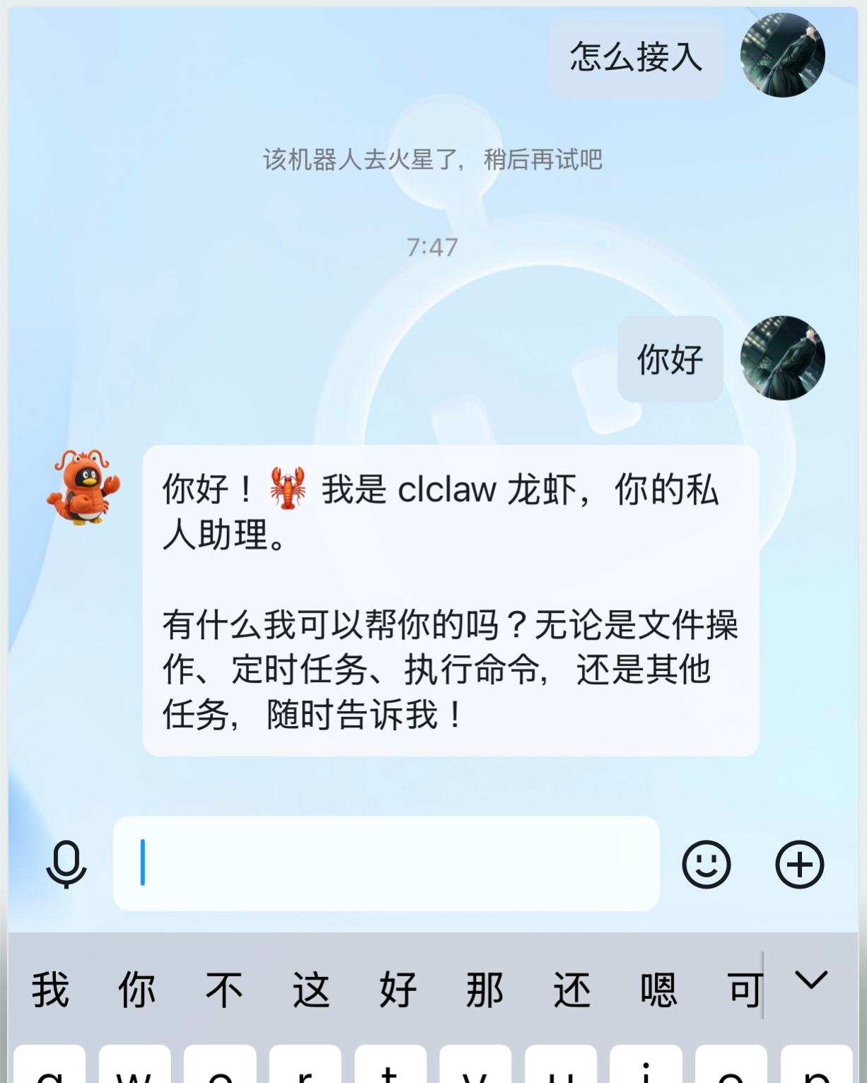 全程不超过 5 分钟,配置完成后即可在手机 QQ 中随时随地给你的 AI 下达指令。基于 QQ 官方开放平台,安全稳定。